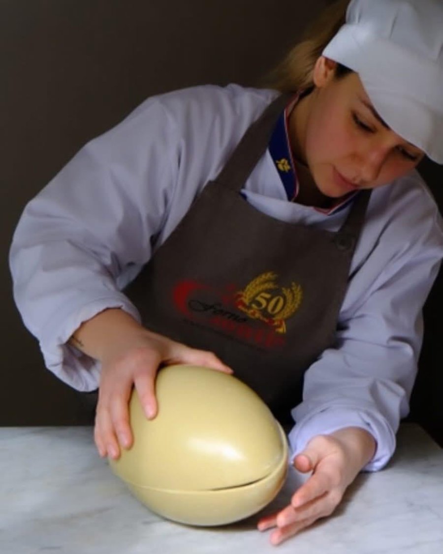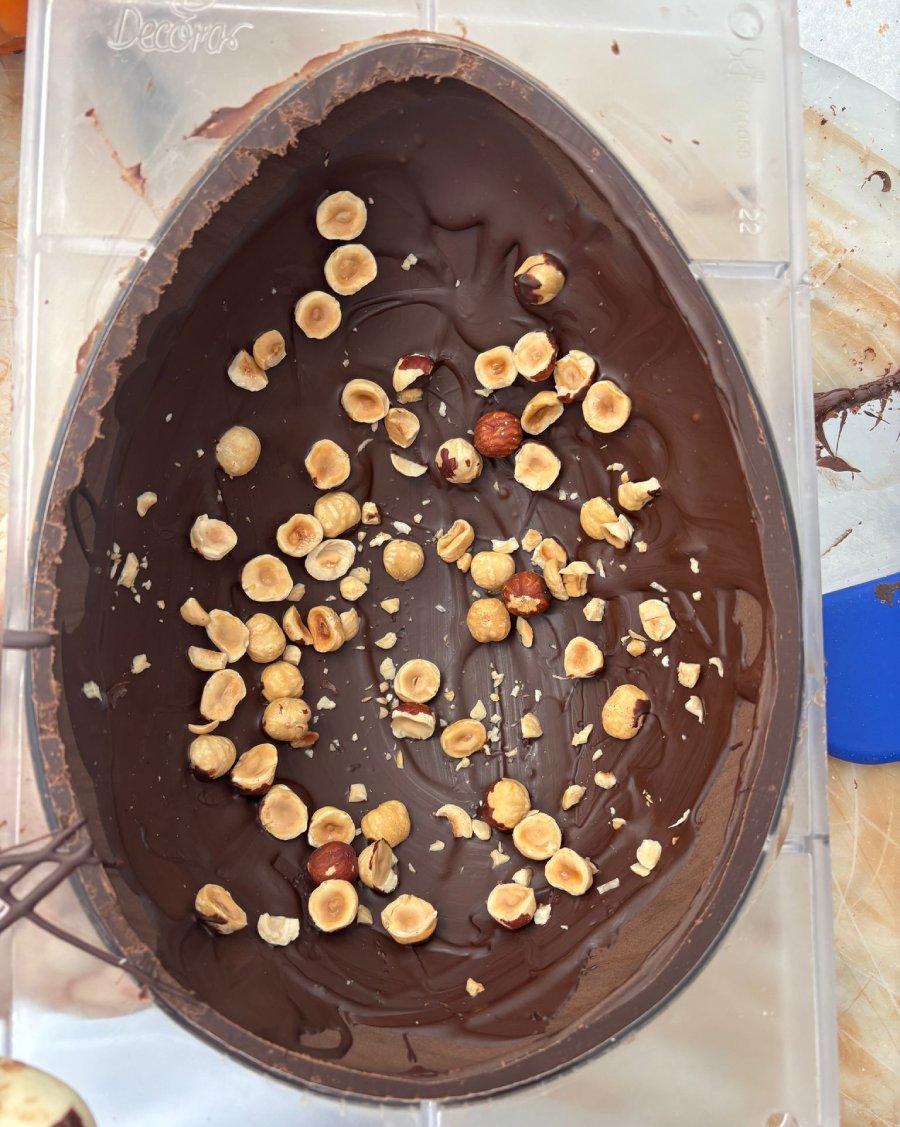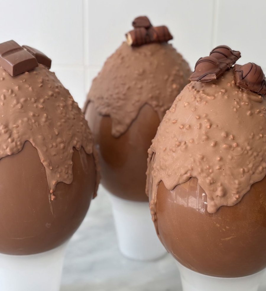 “Anche queste sono tutte fatte da noi, con i vari tipi di cioccolato: al latte, bianco, fondente, al pistacchio, metà di un gusto e metà dell’altro. Decorate e personalizzabili al 100%. I clienti si possono sbizzarrire, prenotarle e portare la sopresa, che sarà inserita al loro interno”.