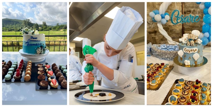 “Il mio percorso – prosegue Diletta – non è stato immediato: dopo il diploma in Accoglienza Turistica all’Istituto Alberghiero Saffi di Firenze, ho proseguito con una laurea triennale in Scienze della Comunicazione all’Università di Firenze. Ma proprio in quegli anni universitari, ho capito che la pasticceria non era solo un meraviglioso hobby: era ciò che davvero desideravo fare. Ho iniziato così a fare esperienza in alcune pasticcerie di Borgo San Lorenzo – tra cui Cesarino (ultima gestione ) e Aurelio – per mettermi alla prova. Anche le esperienze meno positive mi hanno insegnato molto e mi hanno dato la conferma che quella era la mia strada. Per questo ho deciso di investire davvero su di me e mi sono iscritta al Corso Superiore di Pasticceria di ALMA, la Scuola Internazionale di Cucina Italiana a Colorno, diplomandomi a ottobre 2024. Lì ho avuto l’opportunità di avvicinarmi alla pasticceria da un punto di vista più tecnico e raffinato. Grazie al tirocinio di quattro mesi presso il ristorante stellato Peter Brunel ad Arco, in Trentino, ho scoperto il mondo affascinante dei dessert al piatto, che non avevo mai sperimentato prima”.