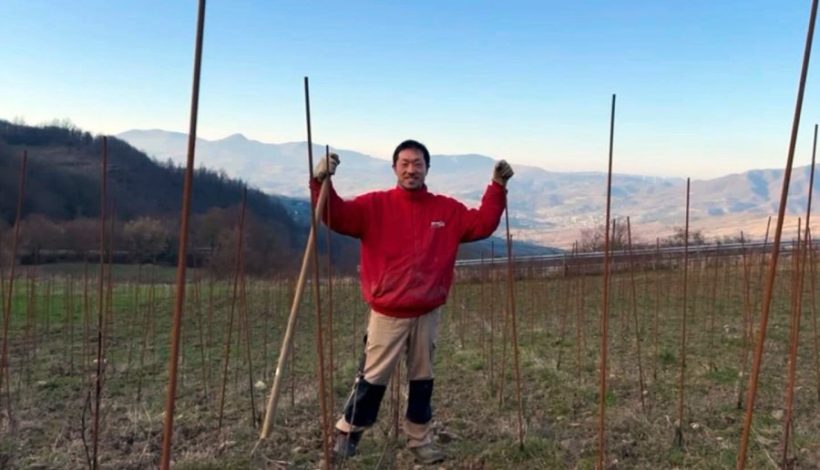 FIRENZUOLA –  Abbiamo raccontato in più occasioni la bellissima storia di Tatsuhiko Ozaki, giapponese che a Firenzuola dal 2023 sta impiantando vigneti di Pinot Nero e di “Koshu”, un vitigno giapponese (articolo qui).  La sua azienda agricola si trova tra il comune dell’Alto Mugello e il passo del Giogo, in località Puligno, prima di Rifredo, località che per anni ha visto solo una casa di pietra, sempre spazzata dal vento.